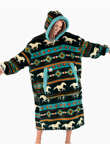 • Load image into Gallery viewer, Horse Fair Isle Dark Blanket Hoodie