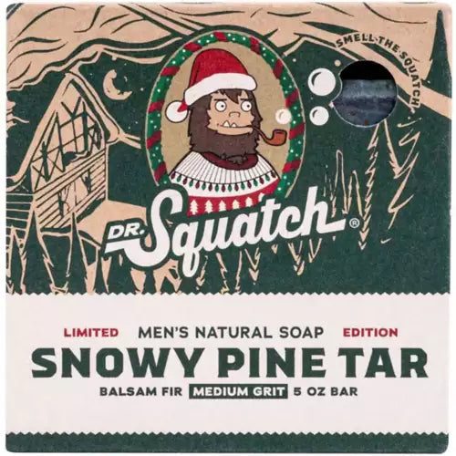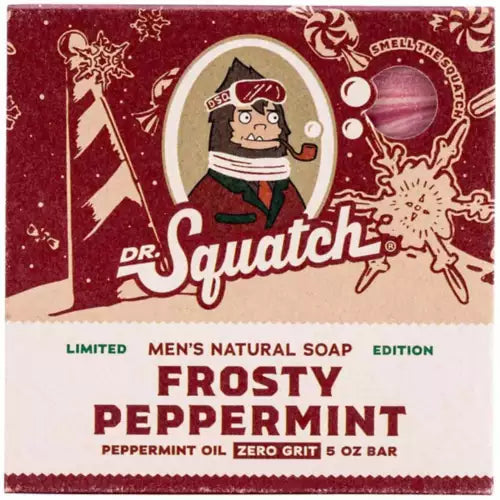 Get into the full holiday spirit with this excellent deal from Dr. Squatch! This incredible holiday two-pack consists of one bar of Snowy Pine Tar and Frosty Peppermint. Snowy Pine Tar is a Christmas spin on Squatch's classic Pine Tar smell. It is a medium grit, all-natural soap that will have you smelling just like a Balsam Fir Winter Wonderland! Frosty Peppermint is exactly how it sounds. A zero-grit all-natural soap made with refreshing and minty peppermint oil! Sweet, simple Christmas goodness made with no harsh chemicals, as you'd expect from Dr. Squatch.