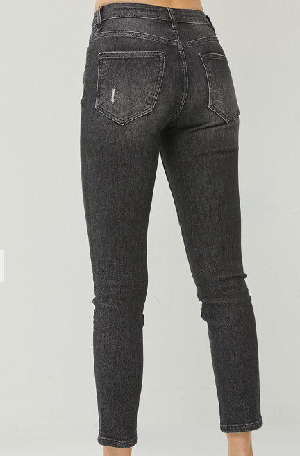 MID RISE ANKLE SKINNY JEANS- Rise 9 1/2" | Inseam 28" in size 3/26- Model Info: Height 5'9" | Waist 24" | Hips 35"