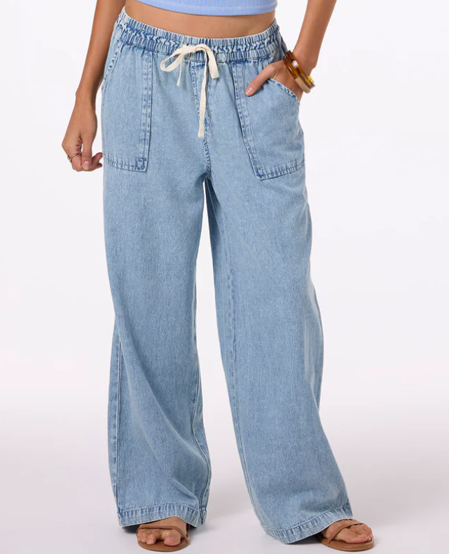 Essential denim pull-on pant that's perfect for beach days or exploring the city. Our Sevie pant has a lightweight feel, ankle length wide leg fit and an elastic waist with drawcord.