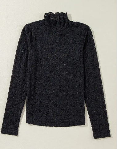 Bring some charm to your wardrobe with this elegant long-sleeved top. Delicate lace detailing creates a romantic vibe, while the high neckline adds a touch of sophistication. Perfect for layering or wearing solo, this piece effortlessly transitions from casual outings to more polished occasions. It's the kind of top that makes you feel put-together without trying too hard.
