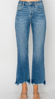 HIGH RISE CROP FLARE FRAY HEM JEANS